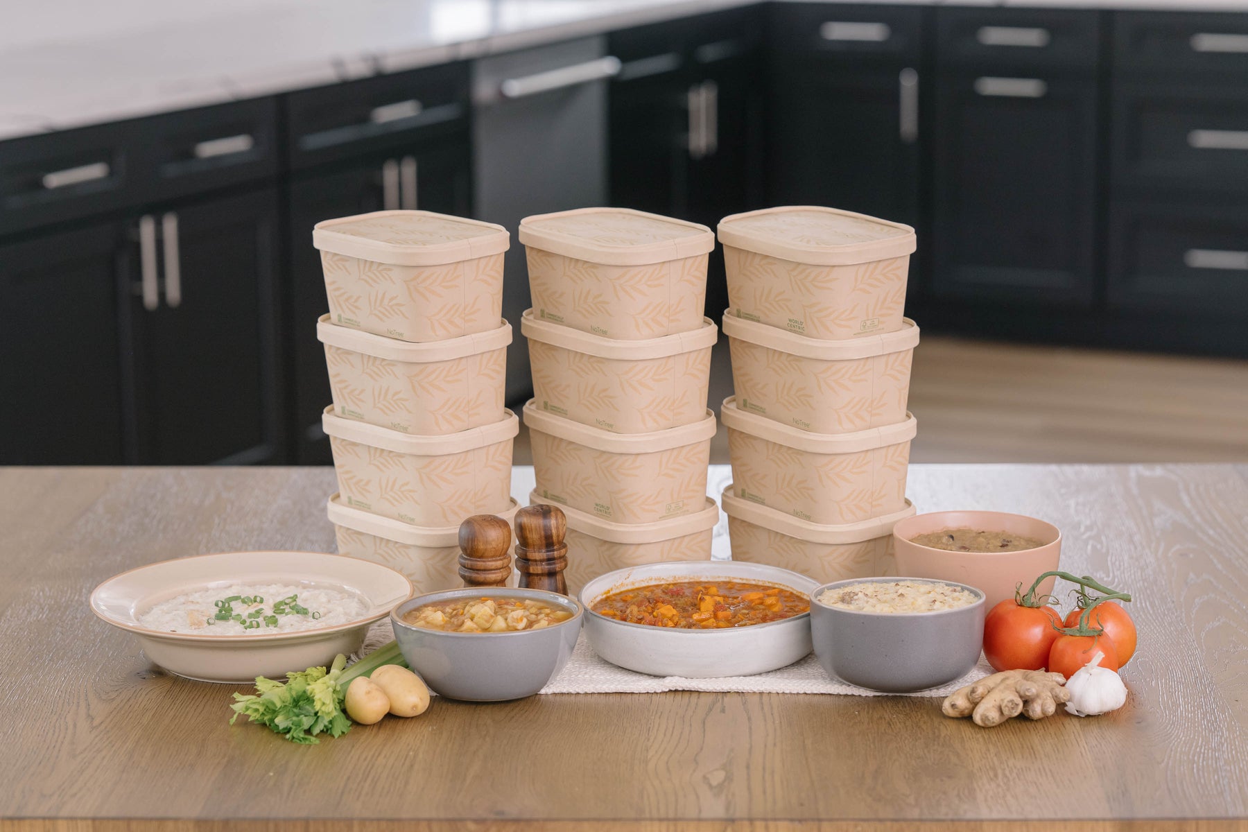 The Restorative Roots Gift Box is the perfect way to give her all three. It includes our most popular soups and stews (2 servings per entrée).